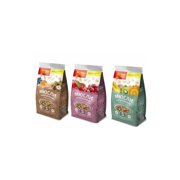 Мюсли запеченно-ореховые Тропик микс, Фруктово-ягодлные Шоколад-миндаль Ясно солнышко 300гр